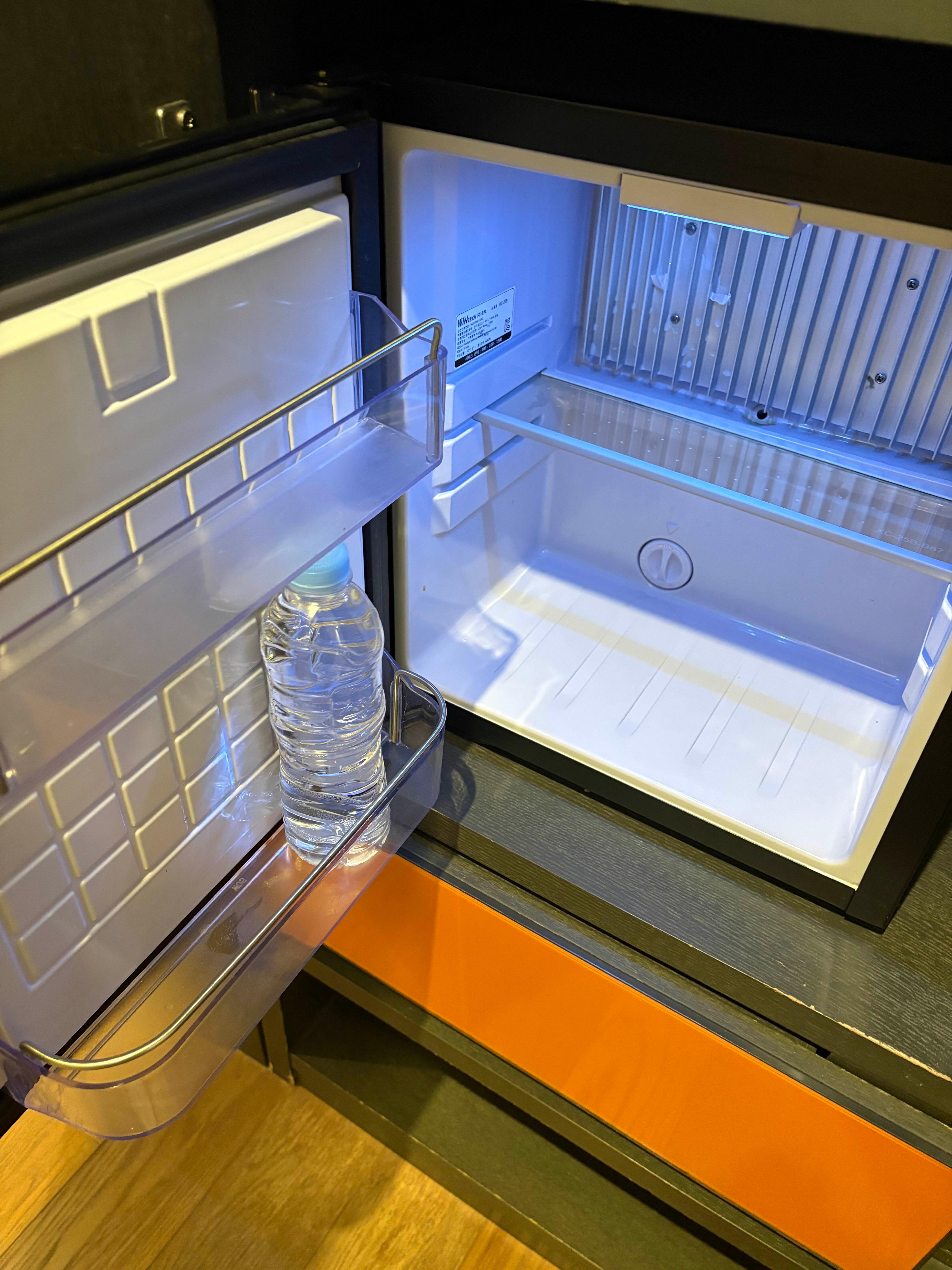 바로 아래칸이 냉장고인데, 내용물은 물 하나입니다.